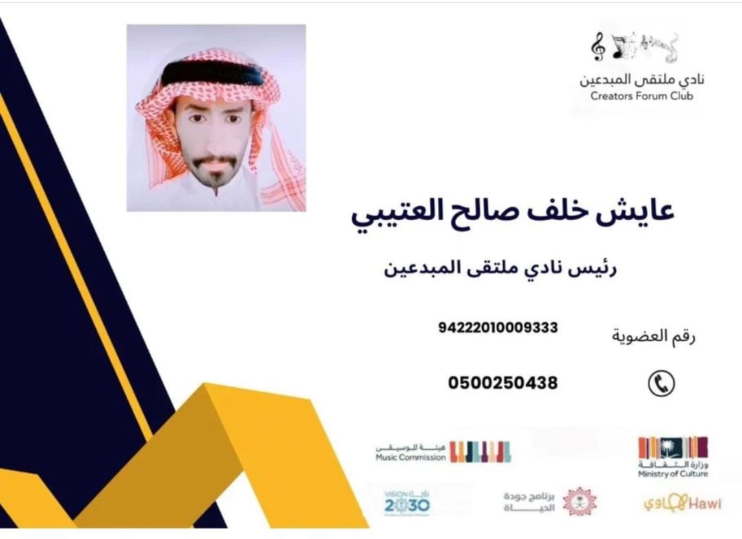 رفع الأستاذ عايش العتيبي رئيس نادي ملتقى المبدعين الموسيقي التهنئة لمقام خادم الحرمين الشريفين الملك سلمان بن عبدالعزيز آل سعود، ولصاحب السمو الملكي الأمير محمد بن سلمان بن عبد العزيز ولي العهد رئيس مجلس الوزراء -حفظهما الله-، وإلى الشعب السعودي والأمتين العربية والإسلامية، بمناسبة حلول عيد الأضحى المبارك