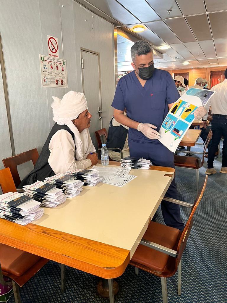 و كشفت “الصحة” أنه تم تشكيل ( 22 ) فريق توعوي من خلال ( 120 ) مشارك لتوعية حجاج بيت الله الحرام القادمين عبر مطار الملك عبد العزيز الدولي بجدة و ميناء جدة الإسلامي و أيضاً محطتي قطار الحرمين في كلاً من المطار و محطة السليمانية ، حيث يقومون بدورهم الكامل في توعية ضيوف الرحمن من خلال البوسترات المطبوعة ( المصورة ) و عدد من اللوحات المختلفة موضح فيها طرق الوقاية و الإرشادات التي يجب إتباعها ، وتضمنت العديد من الرسائل التوعوية المصورة و المطبوعة بعدة لغات بهدف تعريفهم بمخاطر الأمراض و كيفية الوقاية منها و كيفية تجنبها حماية لهم و لغيرهم من الحجاج من الإصابة بأي مرض لا سمح الله ، و مبينة أنه تم توعية ( 214,783 ) حاج و حاجة من مختلف الجنسيات في الأربعة منافذ ، و أضافت أن الفرق التوعوية بالمنافذ لا يقتصر دورها فقط على تقديم التوعية و إنما بالتواصل المباشر مع الحجاج و الإجابة على بعض الاستفسارات الصحية فيما يخص الجوانب التوعوية و الصحية .