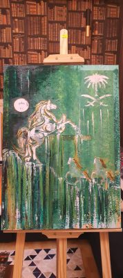إن هذه اللوحة تحفة فنية .. حركة الخطوط ، وأيضا اختياراتك اللونية ، حقا إن الفن طريقة للوجود وأسلوب للحياة ، هو الشيء الجدي الوحيد في هذا العالم وأنت فنانة نادرة ، عرفتك من خلال أعمالك الفنية الرائعة ، وإنجازاتك المشرفة والتي من خلالها فرضت علينا احترامك والاعجاب .