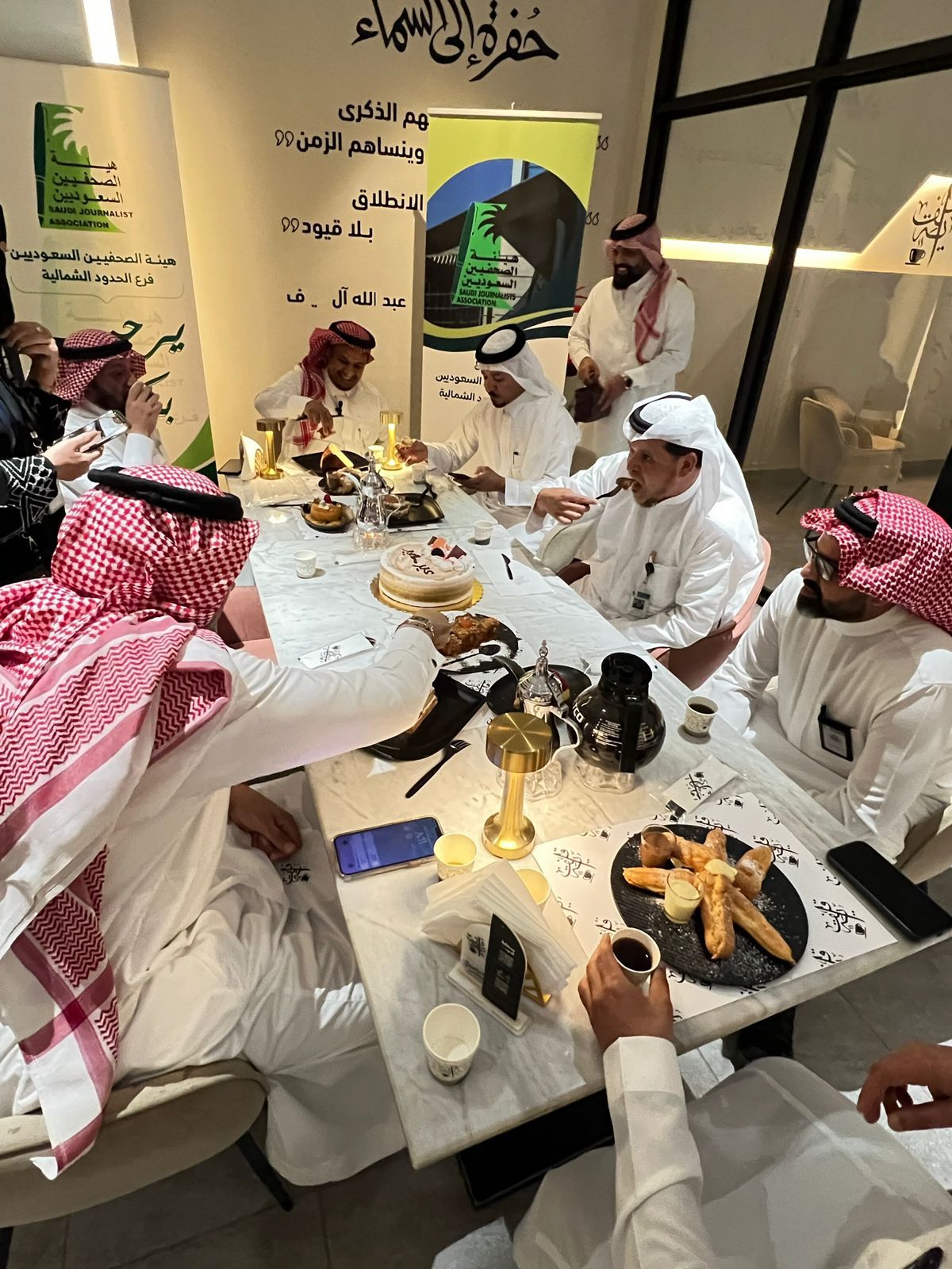 أقام فرع هيئة الصحفيين السعوديين بمنطقة الحدود الشمالية لقاء معايدة مساء هذا اليوم السبت رابع أيام عيد الأضحى المبارك وذلك في كوفي قافية لاونج.