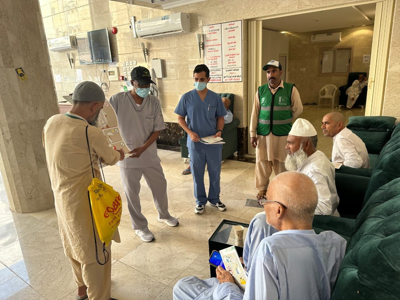 وذكر المتحدث الرسمي بصحة منطقة مكة المكرمة حمد بن فيحان العتيبي بأن الفريق قدم نصائح و إرشادات توعوية طيلة موسم الحج، لضيوف الرحمن عن الإجراءات الطبية و الوقائية و الاحترازية التي يجب أن يتبعها الحجاج بشكل عام، و المصابين بأمراض مزمنة أو من لديهم حالات مرضية خاصة، بكيفية التعامل مع حالتهم خلال موسم الحج.
