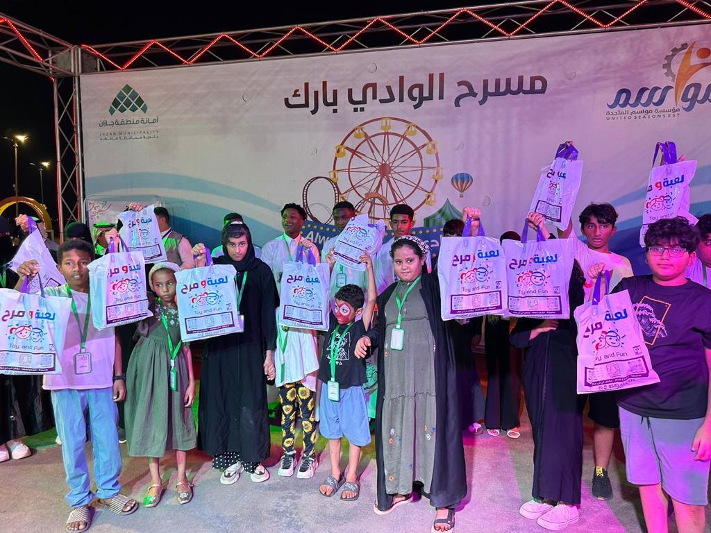 احتفت جمعية رعاية الأيتام بجازان “غراس” بالأيتام وأبناء الشهداء بعيد الأضحى المبارك وذلك بمشاركة جمعية سمعك لذوي الاعاقة السمعية بحضور الأستاذ جابر الجابري مدير العلاقات العامة والاعلام و الأستاذ أمين عريشي مدير الرعاية الاجتماعية بالجمعية ، وذلك بمنتزه وادي بارك بمحافظة صامطة .