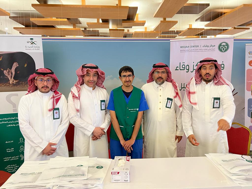 بمناسبة اليوم العالمي للأمراض المشتركة نظم المركز الوطني للوقاية من الآفات النباتية والامراض الحيوانية ومكافحتها بمنطقة عسير (وقاء) بالتعاون مع إدارة مكافحة نواقل المرض والامراض المشتركة بوزارة الصحة وإدارة الإصحاح البيئي برنامجا في الراشد مول يهدف الى التعريف بالأمراض التي تسببها الحيوانات او التي تصيب الحيوانات ويمكن ان تنقل الى الانسان بشكل مباشر او غير مباشر والعكس كذلكـ يأتي ذلك تزامنا مع اليوم العالمي للأمراض المشتركة التي تتمثل خطورتها في سرعة انتشارها بين الأفراد وتأثيراتها الصحية علي الانسان وعلى مصادر الغذاء.