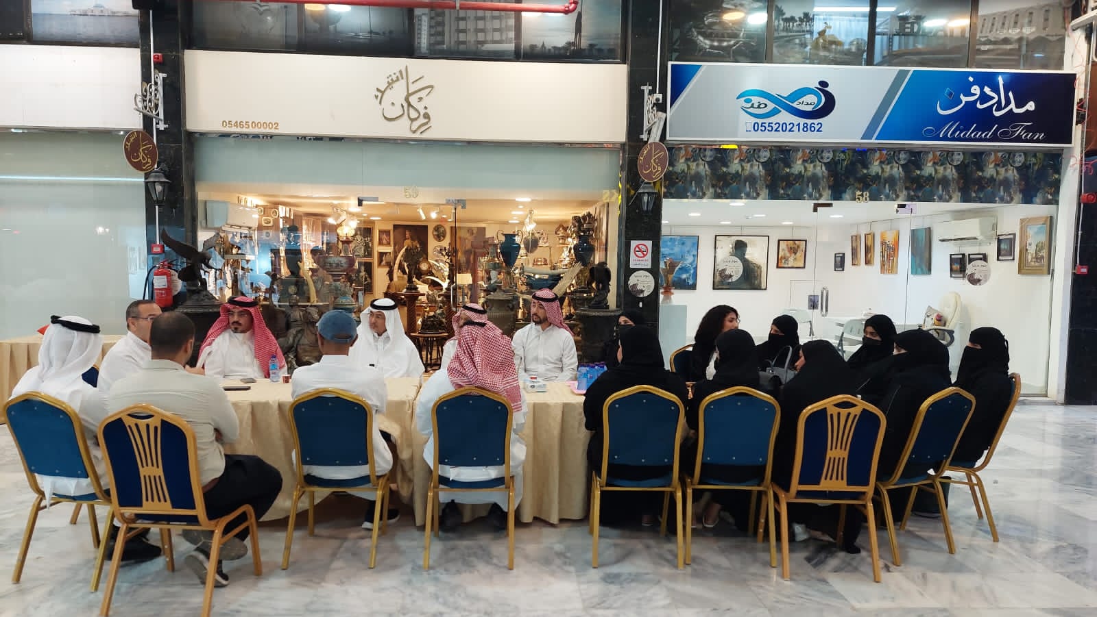 بكل ترحيب وحفاوة من جميع الصالات ومنسوبي المركز تم تعريفهم بالصالات وما تعرضه من لوحات لمختلف المدارس الفنية التي تجذب السائح وتنقل صورة واضحة وجميلة عن الثقافة والتراث السعودي.
