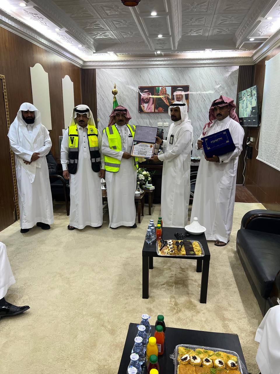تم تكريم رئيس جمعية نخبة الشمال للإنقاذ أ -عبدالعزيز الطالب وقائد فريق طريف أ- ثامر راضي الرويلي ونائبه أ- محمد جدعان الرويلي ورئيس العلاقات العامة، أ- محمد بشيت الرويلي ونائبه أ -عبدالهادي مزعل الجعيب من قبل رئيس بلدية الحديثة