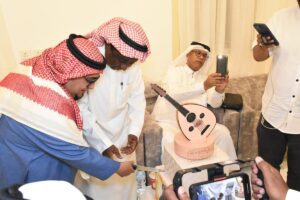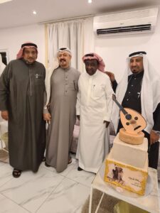 كما قدم ايضا أ فارس الحربي كيكة مع الاستاذ علي فقندش الذي قدم الشكر للقائمين على الحفل الفني والثقافي الساهر وأشاد بجهود مايسترو الملتقى الصحفى “فهد العوذلي” الذي كللت جهوده الإعلامية بتعيينه مديرا للتحرير بإحدى الصحف الشهيرة الأسبوع الماضي .. وهكذا عاش ليل جدة ليلة ماتعة من ليالي الفن والفكر والشعر والثقافة والأدب والطرب ثم تناول الحاضرون طعام العشاء في أجواء حميمية تشي بروح الأخوة والصداقة والوفاء التي تسود بين أعضاء الملتقى .. وانتهى الحفل ، ولن ينتهى الإبداع والفن والفكر الذى سيظل يجمع بيننا على مر الزمان ،،