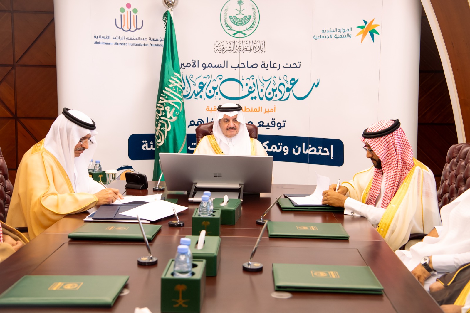 بارك صاحب السمو الملكي الأمير سعود بن نايف بن عبدالعزيز أمير المنطقة الشرقية في مكتب سموه بديوان الإمارة اليوم الاحد توقيع اتفاقية بين فرع وزارة الموارد البشرية والتنمية الاجتماعية بالمنطقة الشرقية ومؤسسة عبدالمنعم الراشد الإنسانية والتي تهدف إلى إطلاق مبادرة “احتضان وتمكين الجمعيات الناشئة”.