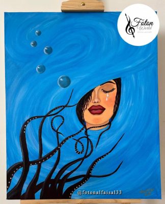 آخر لوحاتي ( اختناق ) كانت من اللوحات المشاركه في معرض مفاجأة تحكي رسالة وصلت ذات محتوى سيء تفجاءت بها واخذتها من القمه الى قاع البحر كانت تختنق من الهموم التى طوقت جسدها و كانت تجذبها للقاع ولكنها أغمضت عينيها عما حدث وأخفت حزنها داخلها وبقيت تصارع لتعود كما كانت فما زالت تتنفس هنالك بريق أمل للنجاه .