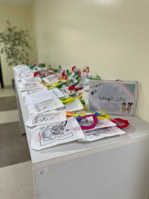 وقد قام الفريق التطوعي المشارك بقيادة الأستاذة شموخ التميمي بوضع أركان يتميز كل ركن عن غيره كركن خاص بالحركة وركن خاص بالرسم والتلوين والليقو والبناء وركن خاص بالألعاب الحركية واختتمت الفعالية بتقديم هدايا للأطفال.