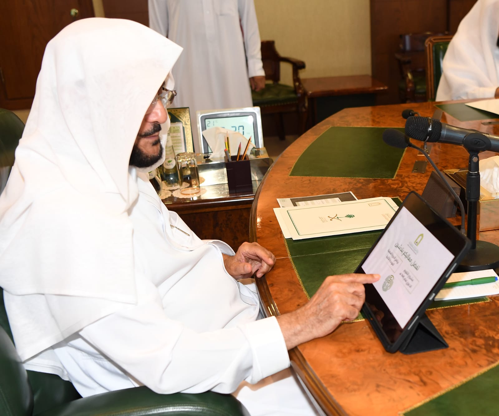 وخلال مراسم التدشين التي حضرها وكلاء الوزارة وعدد من المسؤولين شاهد معاليه عرضاً توضيحياً عن خطة المشروع وكيفية العمل عليه وشرح الأهداف المرجوة من خلاله، وبهذه المناسبة قدم معاليه الشكر الجزيل لمقام خادم الحرمين الشريفين، وسمو ولي العهد ــ أيدهما الله ــ على الدعم الكبير الذي تتلقاه الوزارة والذي ساهم في تميز مخرجات العمل الدعوي، والخدمات المقدمة لبيوت الله وما يخدم الإسلام والمسلمين.