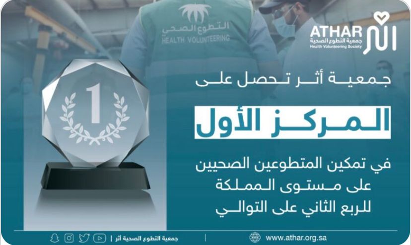 جاء ذلك نتيجة تركيز الجمعية على الأهداف الرئيسية التي أنشئت من أجلها وهي تأهيل وتدريب المتطوعين وتمكينهم من خلال إيجاد فرص تطوعية ومشاريع نوعية وبيئة محفزة تسهم في تعزيز أثر التطوع الصحي على أفراد المجتمع بما يسهم في تعزيز جودة الحياة من خلال دعم الدراسات والأبحاث المتخصصة في هذا المجال مما له أثر في تطوير كافة مجالات التطوع وبرامجه وموارده، من خلال مشاريع الجمعية الإستراتيجية لإنشاء مراكز ووحدات متخصصة مثل أكاديمية أثر للتدريب ومركز المبادرات والأثر وبما يندرج تحتها من أقسام الأبحاث والقياس، كما ترحب الجمعية بإنضمام المزيد من المتطوعين من كافة الممارسين الصحيين لتمكينهم من فرص تطوعية نوعية بعد تدريبهم وتأهيلهم لها، وذلك من خلال مع التواصل مع الجمعية عبر وسائل الاتصال المختلفة لها.