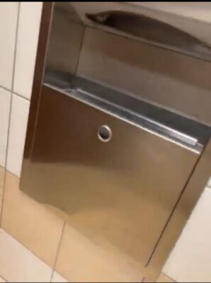 ووضعت الكاميرا في هذا الحمام بقصد التلصص على النساء داخل الحمام.