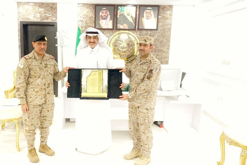 استقبل سعادة محافظ طريف الاستاذ /بدر بن نجر الصقر بمكتبه صباح هذا اليوم الخميس الموافق / 1445/2/8 قائد قوة طريف اللواء ركن /عبدالحفيظ ربعي العتيبي يرافقه العقيد /سلطان العتيبي لتقديم التهنئه لسعادة المحافظ بترقيته للمرتبه الخامسه عشر و شكر سعادتة كلا من اللواء والعقيد على التهنئه.