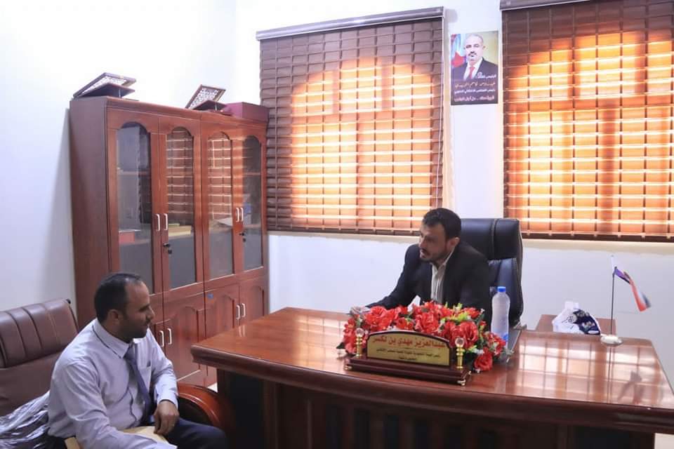 التقى الاستاذ عبدالعزيز مهدي بن لكسر رئيس الهيئة التنفيذية بالقيادة المحلية للمجلس الانتقالي بمحافظة شبوة بمكتبه بمقر المجلس صباح اليوم الإثنين الاستاذ شاكر بارحمه مدير عام فرع صندوق رعاية وتأهيل المعاقين بمحافظة شبوة .