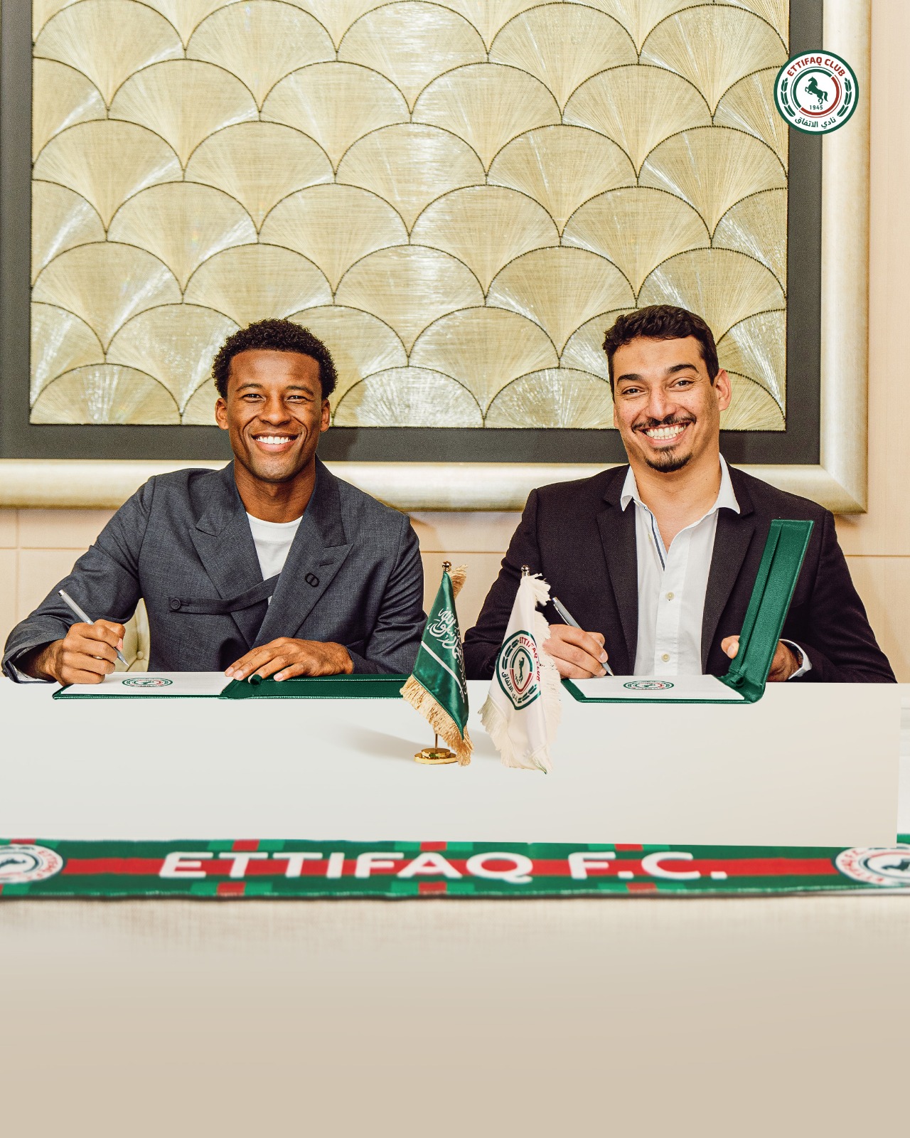 أتمت إدارة نادي الاتفاق التعاقد مع لاعب الوسط الهولندي لكرة القدم جورجينيو فينالدوم ليدافع عن ألوان فارس الدهناء لمدة 3 مواسم قادما من نادي بارس سان جيرمان الفرنسي .