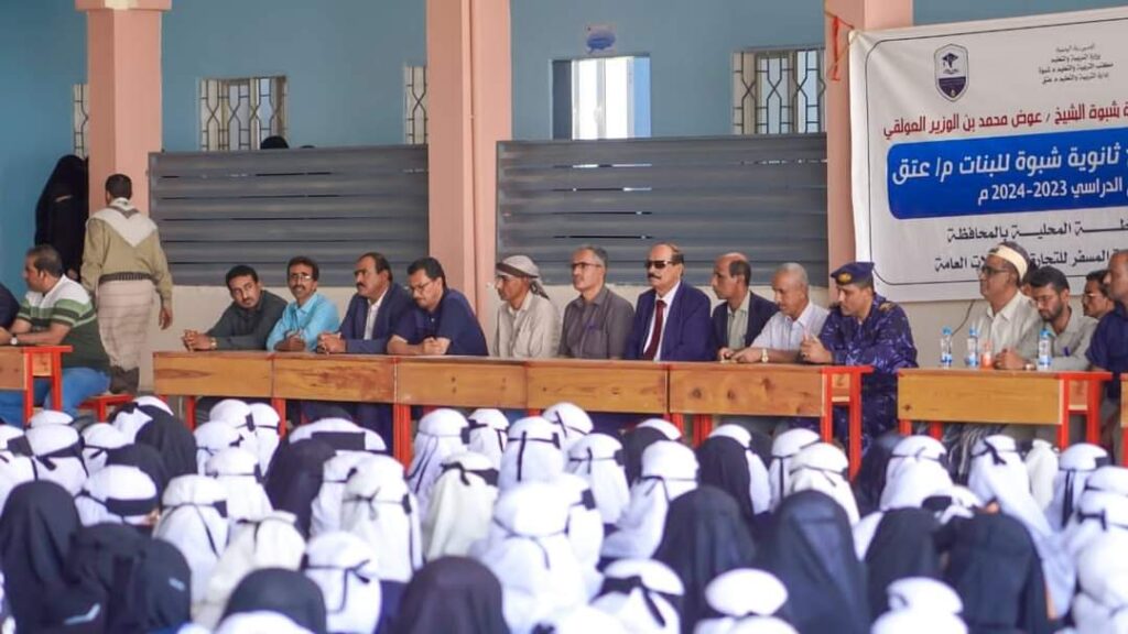 قام وكيل محافظة شبوة القائم بأعمال المحافظ أحمد صالح الدغاري افتتاح مشروع ثانوية شبوة للبنات بمركز المحافظة عتق المكون من 24 فصلاً دراسياً وجميع ملحقاته الإدارية والتعليمية الذي انشئت بدعم وتمويل السلطة المحلية بالمحافظة وتنفيذ مؤسسة المسفر للمقاولات العامة .