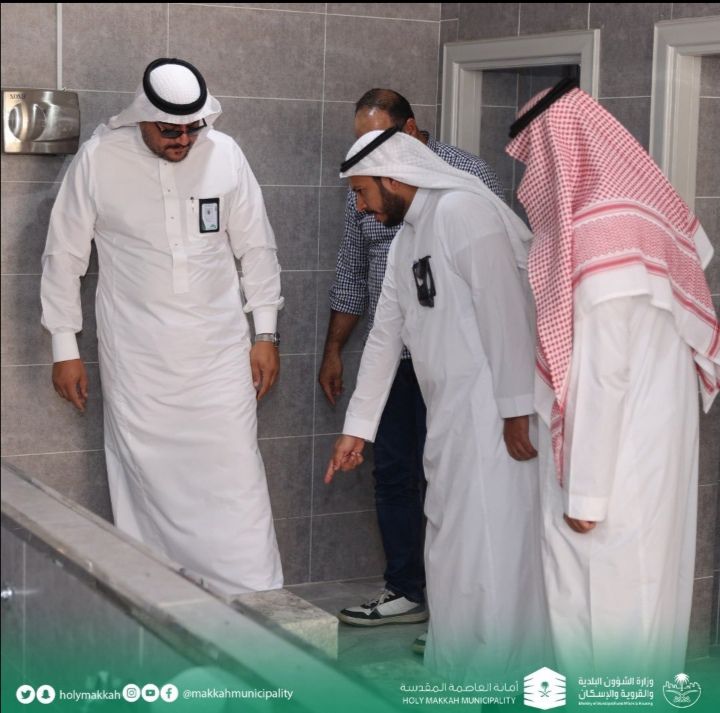 كما وقف المهندس عصام تريمي على مُجمَّعات دورات المياه العامَّة بمواقف كُدي البالغ عددها ٣ مُجمَّعات والمشتملة على ٢٠ دورة مياه للمُجمَّع الواحد بإجمالي ٦٠ دورة مياه تخدم المعتمرين والحجاج، وجرى إعادة تأهيلها وترميمها، بنسبة إنجاز ٩٠٪
