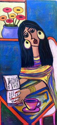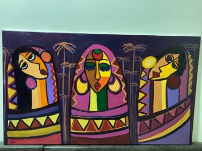أبرز أعمالي الفنية ، لوحة العازفة وهي من الأعمال المفضلة والقريبة لي لأنها تجسد السكون والضجيج في آن واحد