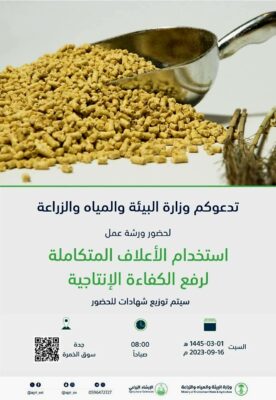 كشف مدير عام فرع وزارة البيئة والمياه والزراعة بمنطقة مكة المكرمة بالانابة المهندس وليد بن ابراهيم ال دغيس عن موعد ورشة عمل متخصصة تحت عنوان: “الاستخدام الأمثل للأعلاف المتكاملة في تغذية الماشية”.