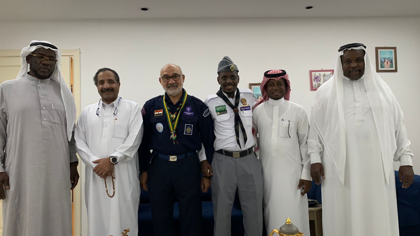 ضم الوفد القائد الكشفي شريف محمود حسين صبح نائب رئيس مجلس إدارة الكشافة البحرية بجمهورية مصر العربية والرائد الكشفي الكابتن طيار عثمان إبراهيم فلاتة نائب رئيس لجنة العلاقة الخارجية برابطة رواد الكشافة السعودية والرائد الكشفي علي بكرهوساوي والرائد الكشفي عبدالمومن عبدالله شعيب ورئيس تحريرصحيفة شاهد الإلكترونية الزميل محمد بكر برناوي والقائد الكشفي سعيد أخضر من قادة النشاطات الكشفية والشبابية بوازراة الرياضة والأستاذ ممدوح أحمد هوساوي من محافظة جدة والمشرف العام على الفريق القائد الكشفي الصحفي عثمان خليفة مدني والجوال بسام علي بكرهوساوي ، وقد أعرب الإعلامي الرائد الكشفي حامد عبدالله العباسي عن سعادته بهذه الزيارة التي قال بانها أدخلت السرور على قبله ، مشيرا إلى فضل زيارة المريض وما تحمله من معاني ايجابية ومعنوية على المريض ، موجها شكره وتقديره لفريق كشافة شباب مكة المكرمة التابع لجمعية مراكز الأحياء ولما يقومون به من أعمال مجتمعية والتي منها هذه الزيارة المباركة..ومن جانبه أعرب أعضاء الوفد عن شكرهم للأستاذ حامد العباسي متمنين له دوام الصحة والعافية.