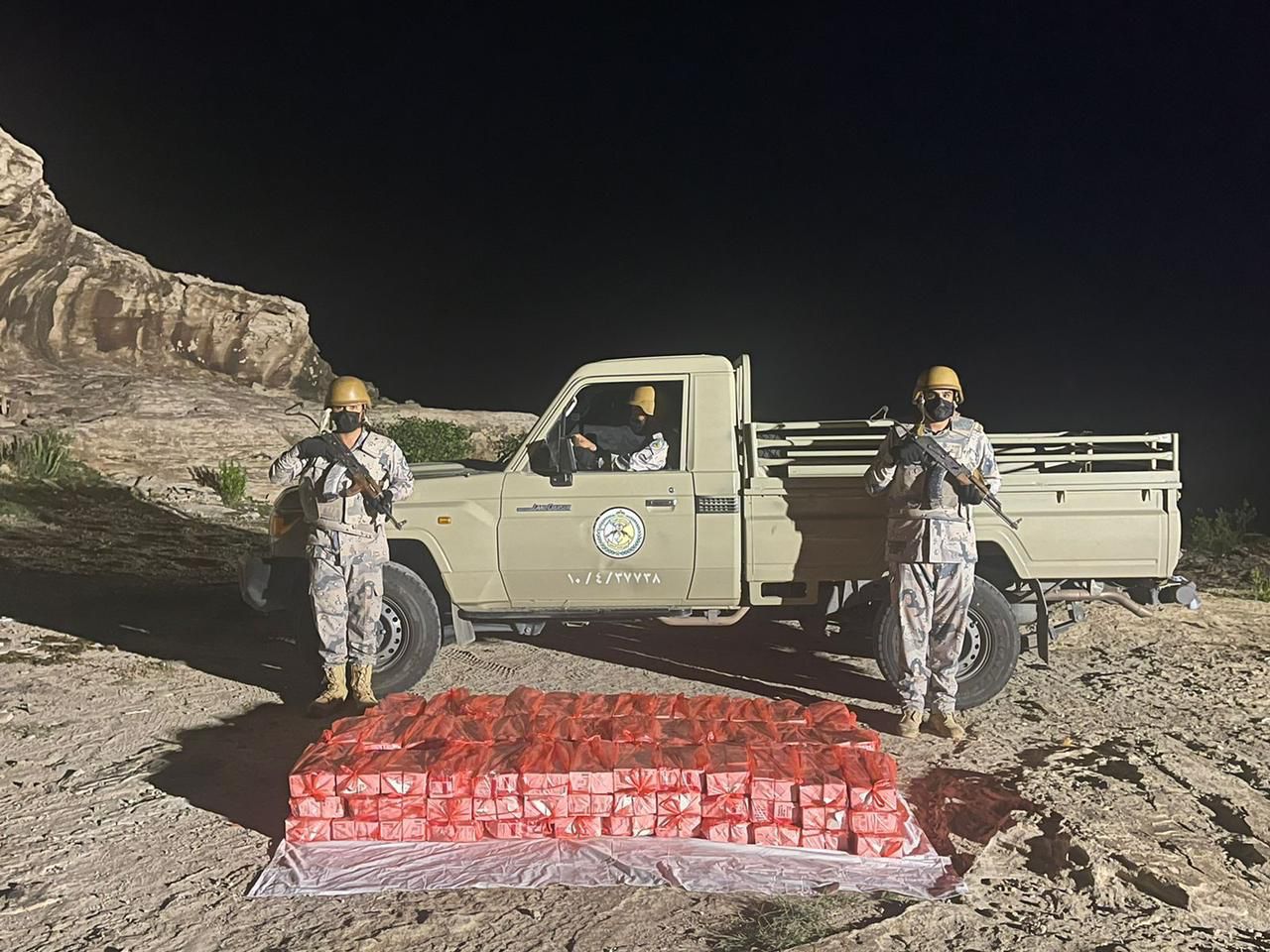 صرّح المتحدث الرسمي للمديرية العامة لحرس الحدود، العقيد مسفر القريني، بأن الدوريات البرية لحرس الحدود في مناطق نجران وجازان وعسير والشرقية، أحبطت محاولات تهريب (39) طنًا و(447) كيلوجرامًا من نبات القات المخدر، و(837) كيلوجرامًا من مادة الحشيش المخدر، و(336,694) قرصًا من مادة الإمفيتامين المخدر، و(478,620) قرصًا خاضعًا لتنظيم التداول الطبي، وقبضت على المشاركين في تهريبها، وجرى استكمال الإجراءات النظامية الأولية بحقهم، وتسليمهم والمهربات لجهة الاختصاص.