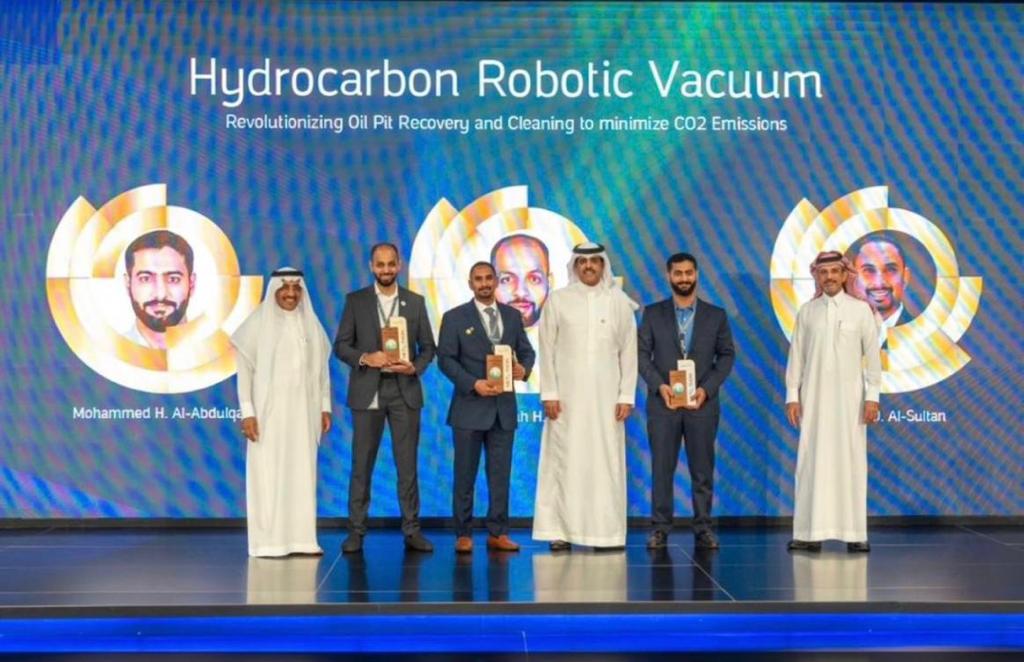 أ. وخالد البريك نائب الرئيس لأعمال الزيت في منطقة الأعمال الجنوبية ، وذلك لحصوله على براءة اختراع لتقليل الإنبعاثات الكربونية.