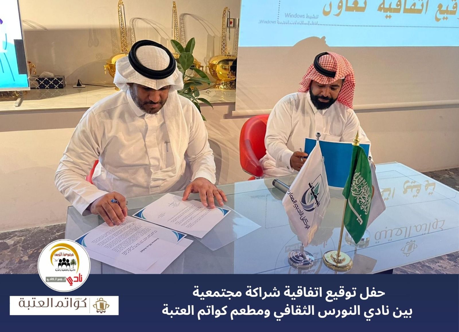 من جانب آخر وقع الوكيل الأدبي الدكتور عبدالله بن عيسى البطيان شراكة مجتمعية تعاونية مع مالك مطعم كواتم العتبة قبيل ورشة أ.ريم العتيبي والتي تضمنت خدمة مبدعي مدينة الجبيل والسعي لجعل كواتم العتبة قبلة ثقافية أحسائية.