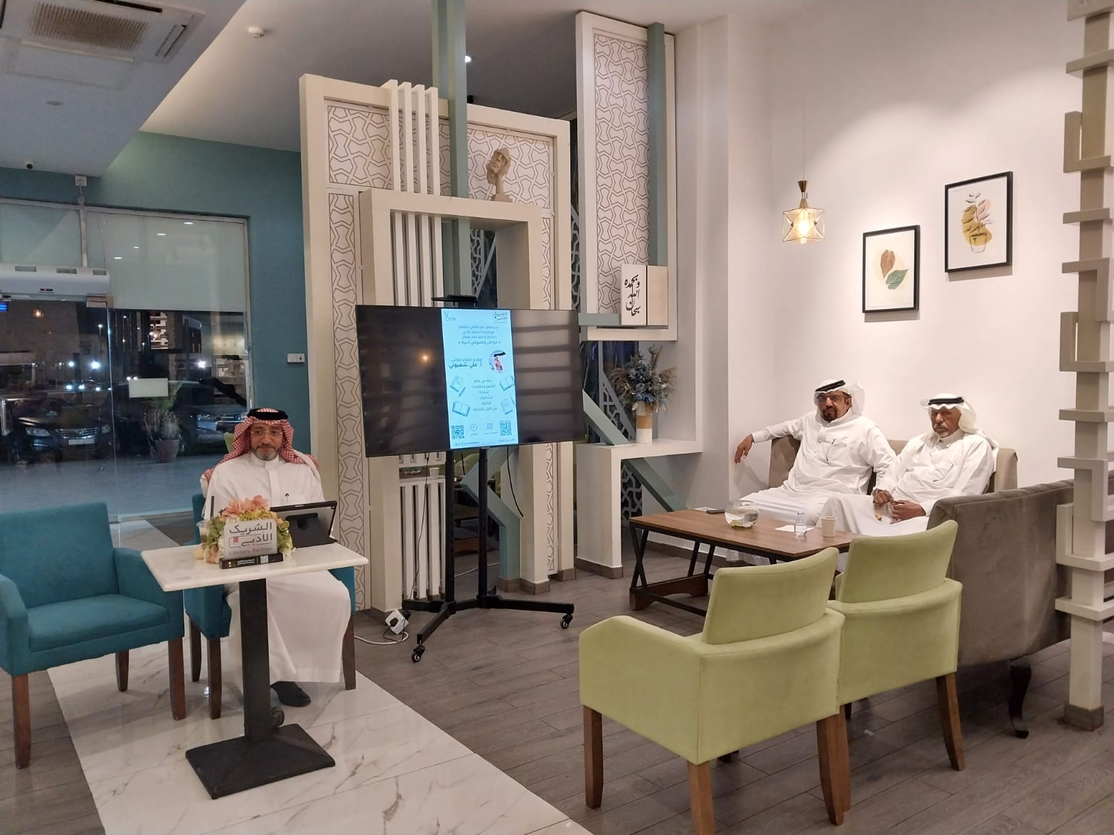 أجواء ساحرة في مقر مقهى حبر “الشريك الأدبي” ، تسمو عبرها الفصحى الرصينة، مع قليل من العامية.