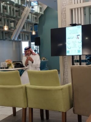 ازدان اللقاء بحضور و مداخلات أدبية إثرائية من الاساتذة و الأستاذات: أ.بنهل البلوشي الذي أخذ الحضور إلى بحر الإلقاء.