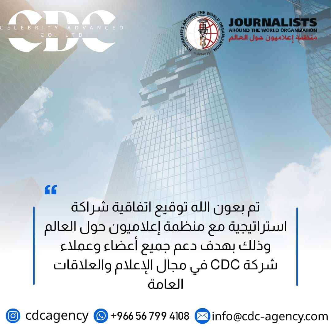 في إطار سعيها جاهدة” نحو التقدم والنمو المنشود تسعى شركة CDC للحصول على العديد من الشراكات الإستراتيجية الدولية وذلك مواكبة لرؤية المملكة 2030 لتصدر المملكة منطقة الشرق الأوسط وشمال افريقيا في قطاع ريادة الأعمال والبيئة الجاذبة للاستثمار ، حيث وقعت مؤخرا” مع منظمة ( إعلاميون حول العالم ) إتفاقية وشراكة أستراتيجية وذلك لخدمة جميع العاملين في قطاع الإعلام والخدمات المساندة له والتي تعمل على تبادل الخبرات والمعرفة دوليا” والمحافظة على أعلى معايير المهنية للعاملين في القطاع الإعلامي .