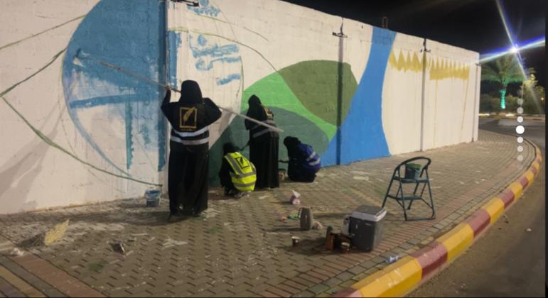 وقد شاركت مؤسسة قيدار للدهانات وعدد من المتطوعين بتوفير ماء الصحة والشاي والقهوة والحلويات أثناء عملهم بالجدارية وشكر رئيس. نادي أدوماتو آرت الأستاذ عبدالله الحمدان جميع الأعضاء والعضوات المشاركين بالجدارية التي يبلغ حجمها ( 700 ) متر مربع ، و تعتبر أكبر جدارية من حيث المساحة يشاركون بها.