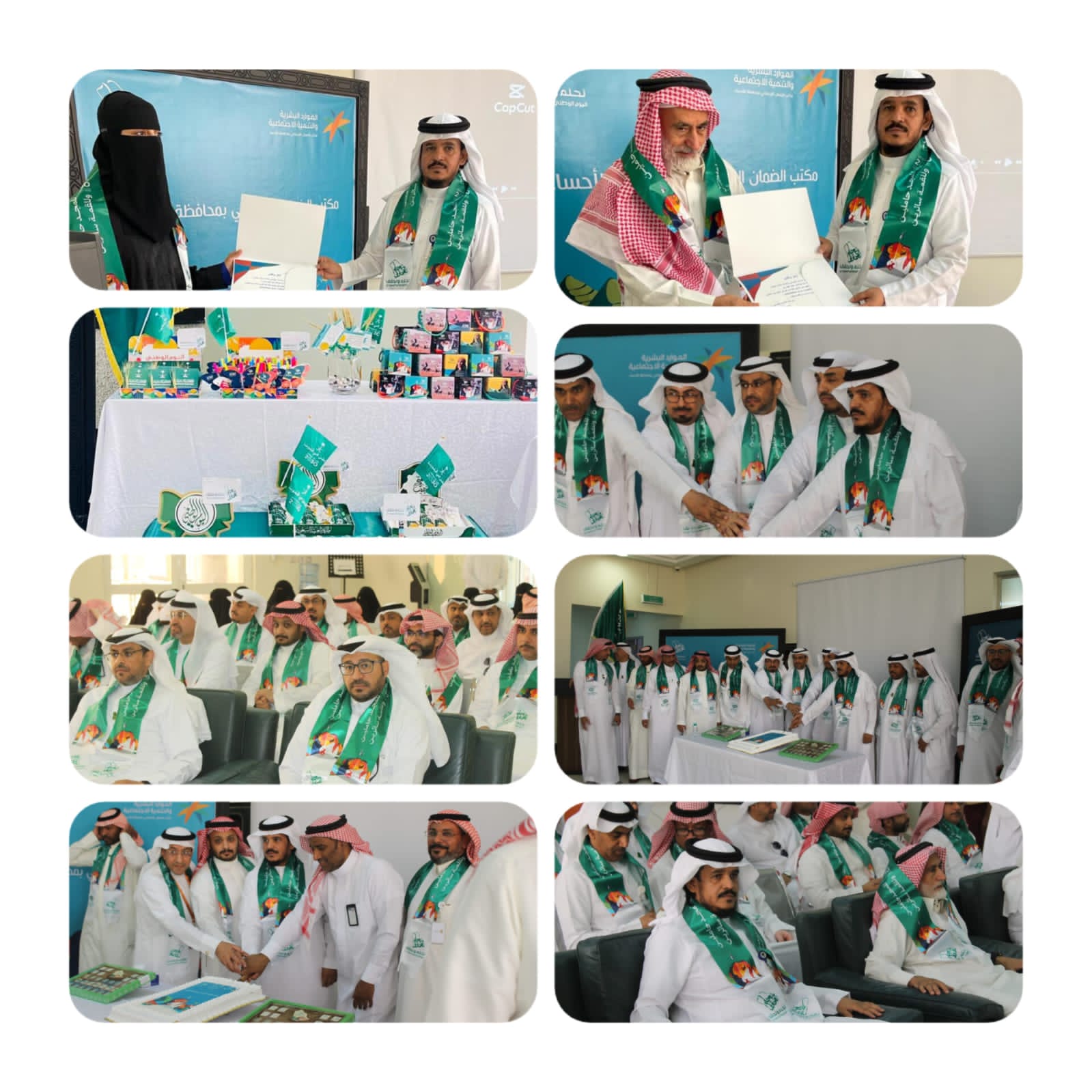 أقام مكتب الضمان الإجتماعي بمحافظة الأحساء إحتفالًا باليوم الوطني السعودي ( 93) وقد حضر الاحتفال مدير مكتب الضمان الاجتماعي الأستاذ /خالد بن فهد العنزي حيث بدأ بالسلام الملكي السعودي وتلاها آيات من الذكر الحكيم وتلتها كلمة للمدير و والتي رفع فيها أسمى آيات التهاني والتبريكات لمقام خادم الحرمين الشريفين الملك سلمان بن عبدالعزيز آل سعود و ولي عهده الأمير محمد بن سلمان آل سعود بهذه المناسبة الغالية على قلوبنا لليوم الوطني وقد تخلل الحفل عرض شمل تطور المملكة واهم معالمها من خلالل هوية (نحلم ونحقق )كما تم عرض بعض الأغاني والقصائد التي تعبرعن حب الوطن الغالي ، وكان ذلك بحضور عدد من منسوبي ومنسوبات المكتب وقد شاركهم الفرحة والاحتفاء عدد من المراجعين الذين حضروا خصيصًا لاحياء هذا المناسبة الغالية على قلوب الجميع .