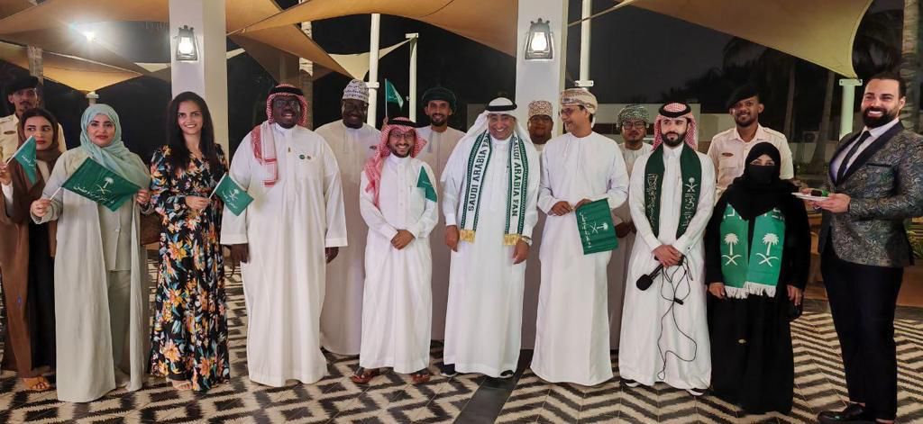 بحضور رواس حفيظ الرواس المدير عام المساعد لوزارة التراث والسياحة في سلطنةً عُمان ..احتفل الوفد الاعلامي السعودي الزائر للسلطنة باليوم الوطني الـ٩٣ في صلاله بمنتجع البليد أنتارا .