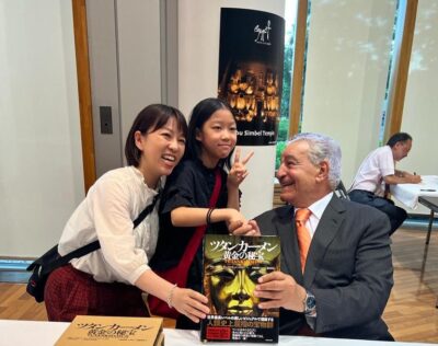 ووقع “حواس” كتابه الجديد الذي نشر باللغة اليابانية عن الملك توت الكتاب.