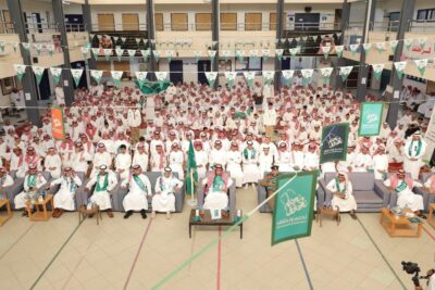 وبعد أن تزينت جميع المدارس بمختلف مراحلها بالإضاءات والهوية الوطنية، احتفلت بدءاً ولمدة 4 أيام، بتنفيذ عددًا من الفعاليات والأنشطة المميزة، عبر من خلالها الطلاب والطالبات من خلالها بالقصائد الشعرية والإلقاء الفردي والجماعي، والأناشيد الوطنية، واللوحات الأدبية والفنية.
