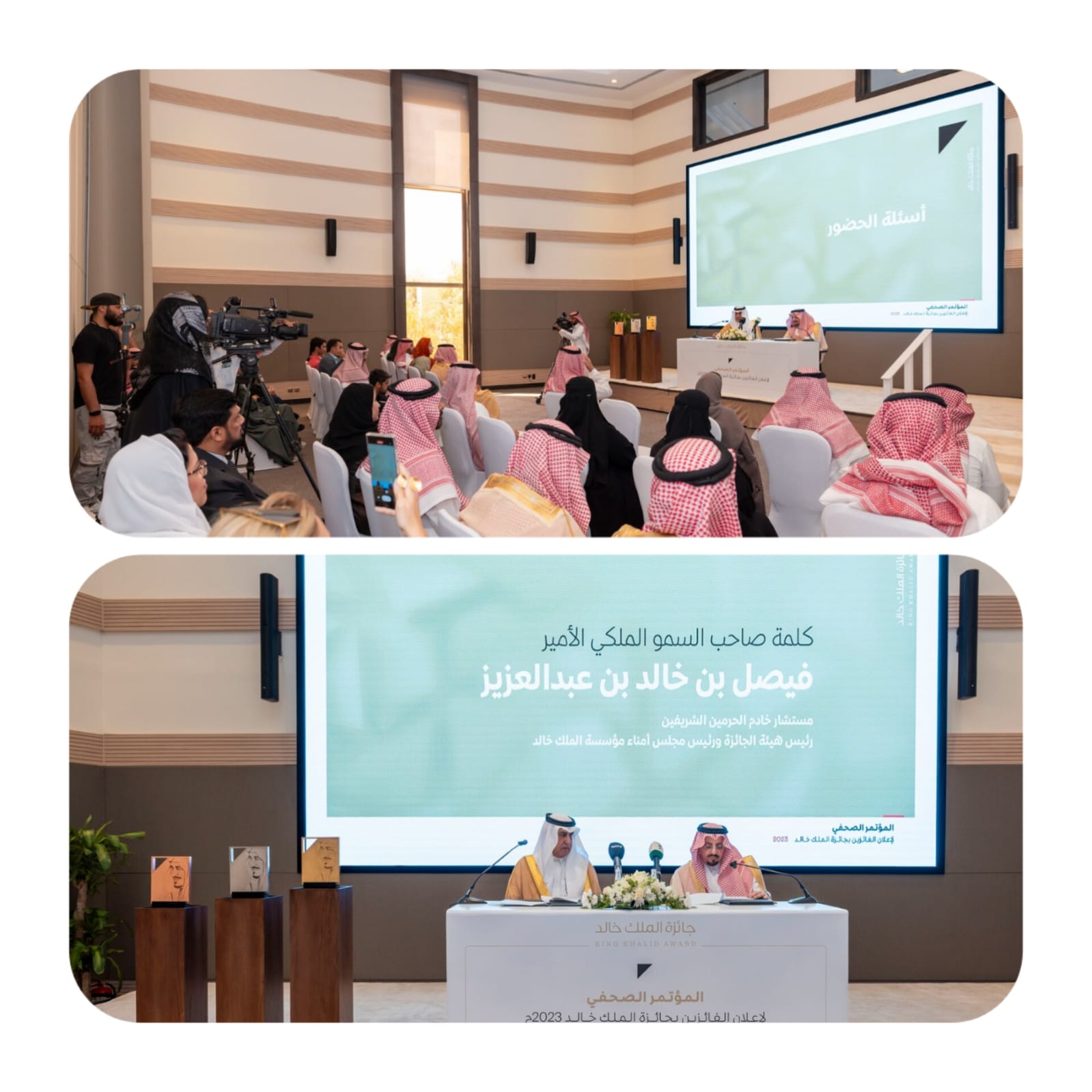 أعلن صاحب السمو الملكي الأمير فيصل بن خالد بن عبد العزيز -مستشار خادم الحرمين الشريفين، ورئيس هيئة جائزة الملك خالد، ورئيس مجلس الأمناء – خلال مؤتمر صحفي عقده سموه اليوم الخميس في مقر مؤسسة الملك خالد بمدينة الرياض أسماء الفائزين بالجائزة لعام 2023م، والتي تتضمن: شركاء التنمية، وتميز المنظمات غير الربحية، والاستدامة.
