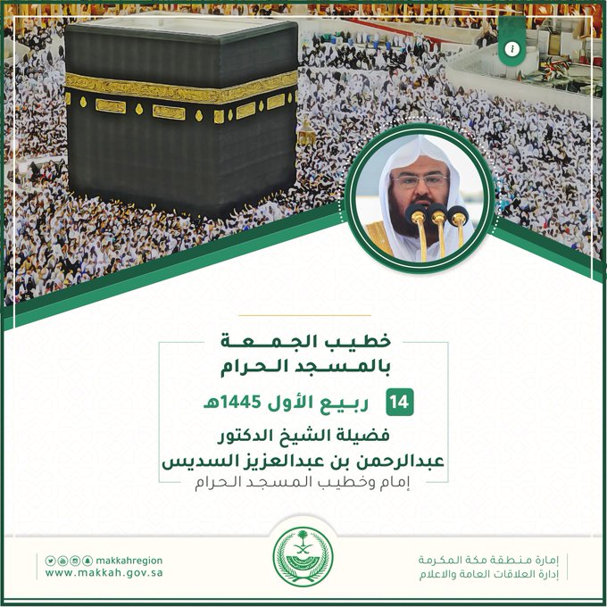 مبيناً أنه في الوقت الذي تجتاح أجزاءً من العالم الإسلامي الحوادث والكوارث، والزلازل والفيضانات، يجدر الوقوف مع المنكوبين والمرزوئين، ولاسيما في المغرب وليبيا، قائلاً :”كان الله في عون إخواننا في درنة المنكوبة، لطف الله بهم، ورحم موتاهم، وعَافَى جَرْحَاهم، وشفى مرضاهم، اللهم ارْحَم ضَعفهم، واجْبُر كَسْرَهم، وَتَوَلَّ أمرهم، اللهم إنهم حُفاة فاحملهم، وعُرَاة فاكْسُهُم، وجِيَاع فأطْعِمهم، يا جابر المنكسرين، ويا مغيث الملهوفين”، مضيفاً “لقد امتدت سحائب العطاء، وجسور الإغاثة والوفاء من بلادنا المحروسة لإغاثة الملهوفين، ومواساة المنكوبين، -ولله الحمد والمنة- وهذه آياتٌ وتذكير، ولا يقال “غضب الطبيعة” مستشهداً بقوله تعالى ﴿وَمَا نُرْسِلُ بِالْآيَاتِ إِلَّا تَخْوِيفًا﴾.