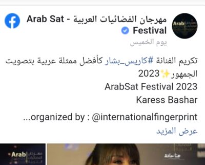 وأعربت كاريس بشار عن شكرها وامتنانها للتكريم بمصر بجائزة أفضل ممثلة عربية عن مسلسل ستيليتو.