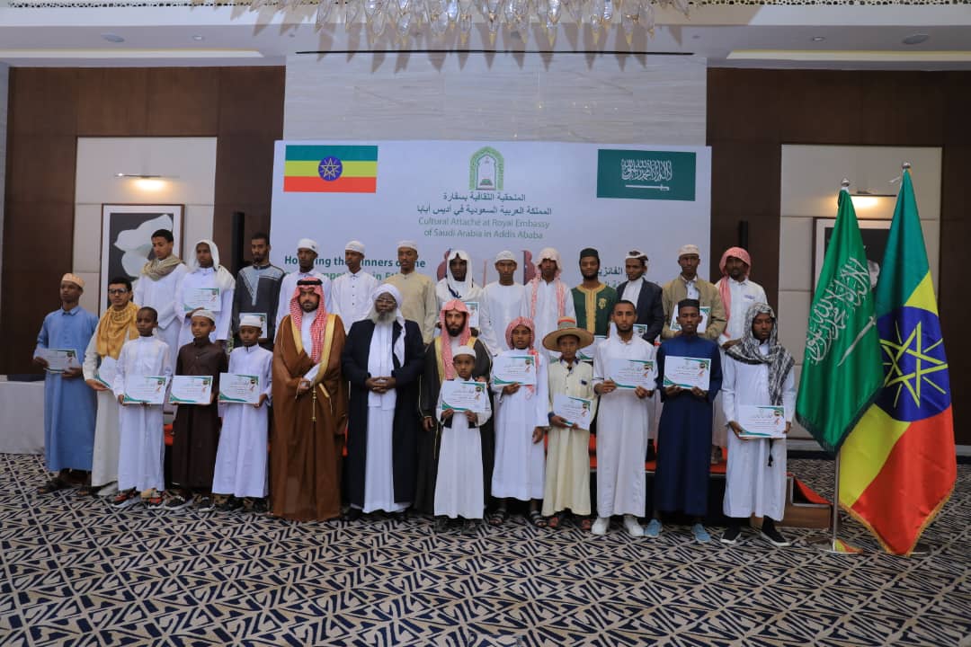 أقامت وزارة الشؤون الإسلامية والدعوة والإرشاد، أمس، الحفل الختامي لمسابقة القرآن الكريم المحلية بجمهورية أثيوبيا في نسختها الأولى بفندق حياة ريجنسي بالعاصمة أديس أبابا، والتي نظمتها الوزارة بالتنسيق مع سفارة خادم الحرمين الشريفين في جمهورية أثيوبيا وبالتعاون مع المجلس الإسلامي الأعلى الأثيوبي، حيث تم تكريم ٢٥ فائزا في فروع المسابقة الخمسة، بحضور رئيس المجلس الإسلامي الأعلى للشؤون الإسلامية رئيس هيئة العلماء بجمهورية أثيوبيا الدكتور حجي إبراهيم تحفة، وسفير خادم الحرمين الشريفين لدى أثيوبيا الدكتور فهد بن عبيدالله الحميداني، وعدد من السفراء ورؤساء المجالس والشخصيات الإسلامية وأعضاء البعثات وعدد من الإعلامين.