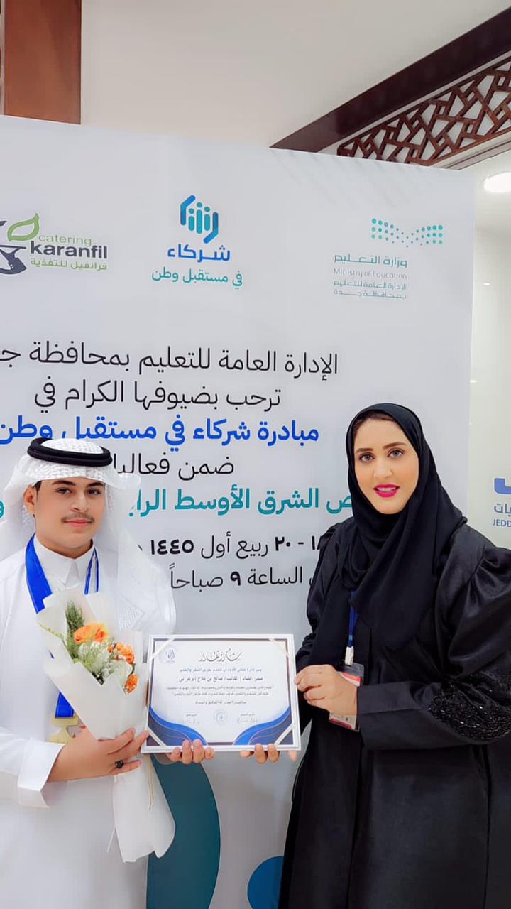 في معرض الشرق الأوسط للتعليم والتدريب كرمت الكاتبة كواكب النجار الشبل صالح بن فلاح الزهراني الذي يبلغ من