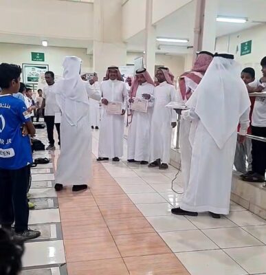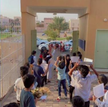 وتمثّلت احتفالية المدرسة عن طريق ممر شرفي على جانبيه الطلاب وهم ينثرون الورود على رؤوس معلميهم، فيما كرم مدير المدرسة الأستاذ فهد العرفي كافة المعلمين، وقدم لهم شهادات الشكر والهدايا.