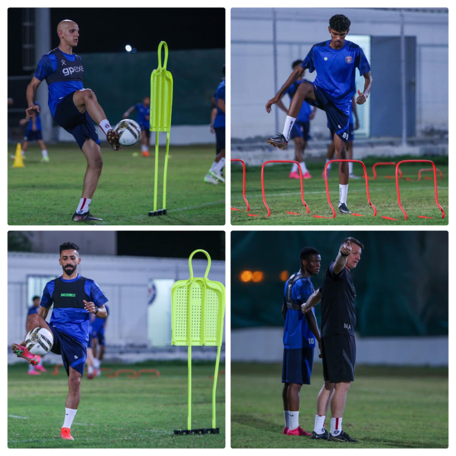 ومن بعد ذلك بدأ التمرين الذي انطلق بتدريبات لياقية متنوعة ومكثفة، ثم عمد لإقامة سلسلة من التدريبات التكتيكية، حيث تنوعت تدريبات التكتيك التي شارك فيها جميع اللاعبين بفعالية كبيرة، كما أقيمت تدريبات متنوعة خاصة لحراس المرمى.