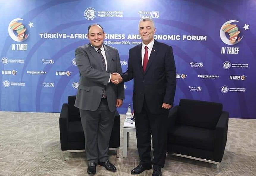 وتوجه الوزير بالشكر لنظيره التركي على دعوته للمشاركة في المنتدى الإقتصادي والتجاري التركي الأفريقي، الذي مثل فرصة متميزة لالتقاء ممثلي الدول الأفريقية مع الجانب التركي لتبادل الرؤى والأفكار حول آفاق التعاون المشترك بهدف تعزيز العلاقات التجارية والاستثمارية الأفريقية مع تركيا.