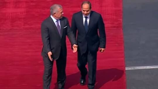 نشرت الرئاسة المصرية لحظة استقبال الرئيس المصري عبد الفتاح السيسي لملك الاردن عبد الله الثاني إلى مصر، لمناقشة تطورات الأوضاع في فلسطين.