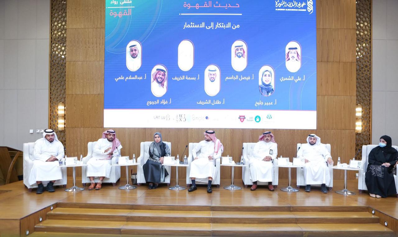 و عقدت الجلسة الحوارية الأولى بحضور المهندس عبدالله بن أحمد أبو النصر أمين عام غرفة المدينة المنورة تحت عنوان” حديث القهوة من الابتكار إلى الاستثمار ” .