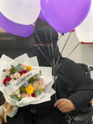 استقبلت الأستاذة عنود الرميح مديرة الإشراف الاجتماعي بالجوف ، و الأستاذة زينب الحواس مشرفة الأنشطة ، والممرضة أماني عيد، والمدربة سلمى الطالب في مطار الجوف مقيمة من ذوي الإعاقة ،كانت تقيم بمركز التأهيل الشامل بالجوف ، وانتقلت قبل أربع سنوات إلي مدينة الرياض بطلبٍ منها ، وبعد نقلها تأثرت نفسياً بسبب البعد والحنين إلي الجوف ومن كان معها.