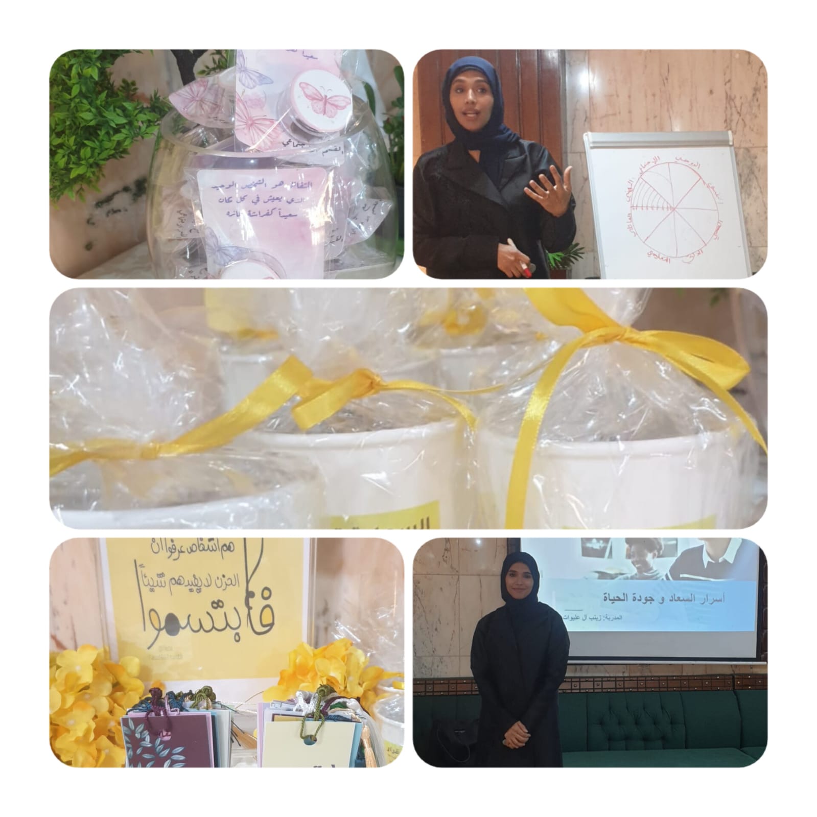 نظم القسم الاجتماعي بدار الحضانة الاجتماعية بالدمام برنامج ( أسرار السعادة وجودة الحياة ) تحت إشراف مديرة الدار أمل بنت حسين عوض قدمتها المدربة زينب بنت مهدي آل عليوات أخصائية سعادة وإيجابية وجودة حياة المعتمدة من البورد الألماني ،