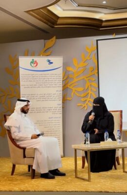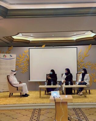 وبعدها جلسة حوارية يديرها الأستاذ جيلاني الشمري مع الأستاذة فوزية الوثلان تحدثت عن معاناة مع التأتأة إلى الصعود لسلم النجاح والتميز