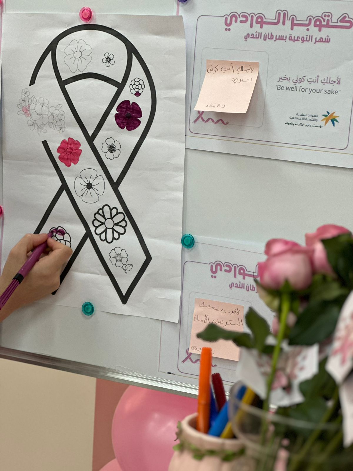 نفذت مؤسسة رعاية الفتيات بالجوف حملة التوعية بسرطان الثدي ، بمناسبة اليوم العالمي لسرطان الثدي ، بركن تعريفي يحتوي على منشورات ومطبوعات للتوعية بأهمية الكشف المبكر لتفادي المرض ، وبمشاركة نزيلات ومنسوبات المؤسسة.