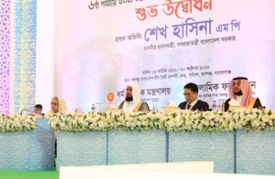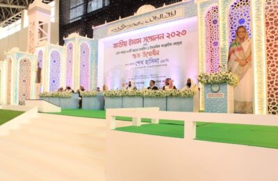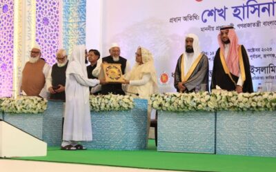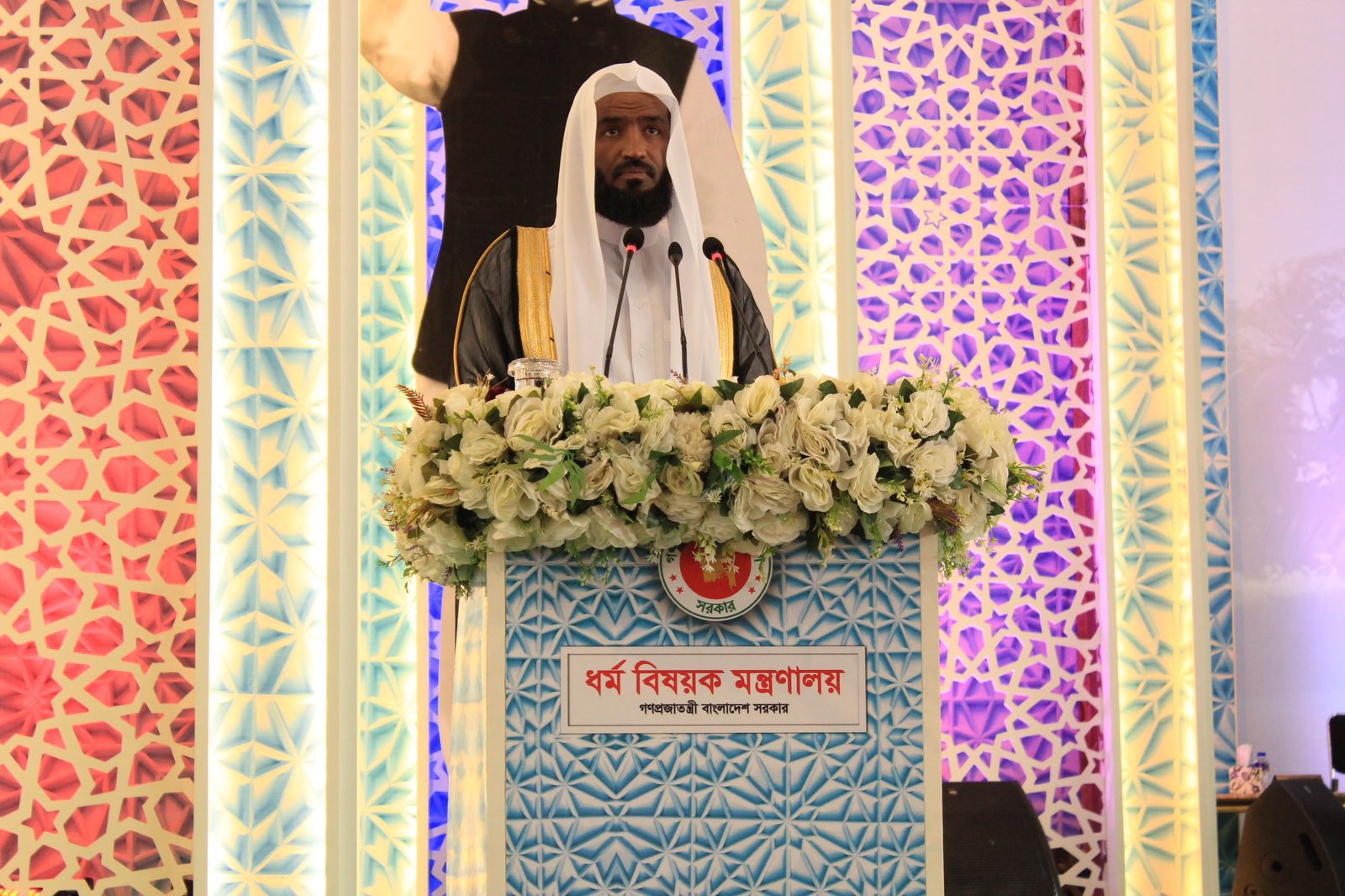 بناء على دعوة رسمية من الحكومة البنغلاديشية شارك فضيلة إمام وخطيب المسجد النبوي الشيخ عبدالله بن عبدالرحمن البعيجان اليوم في مؤتمر الأئمة الوطني وحفل افتتاح 50 مسجداً نموذجياً وتوزيع الجوائز بين أفضل الأئمة الرائدين على مستوى بنجلاديش والحفاظ اللذين حصلوا على جوائز عالمية خارج البلاد والذي أقيم تحت رعاية رئيسة الوزراء لجمهورية بنجلاديش الشيخة حسينه واجد وبحضور عدد كبير من المسؤولين والدعاة والأئمة وطلاب العلم، وذلك ضمن برنامج زيارته الحالية لجمهورية بنجلاديش والذي تنفذه الوزارة.